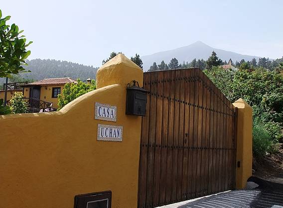Das Haus ist von Obstbäumen umgeben und bietet einen spektakulären Blick auf den Teide.